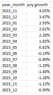 Taking rent inflation data from Apartment List, the latest CPI reading of 3.1% (for November 2023) is incorporating ~4.05% year-over-year rent inflation.