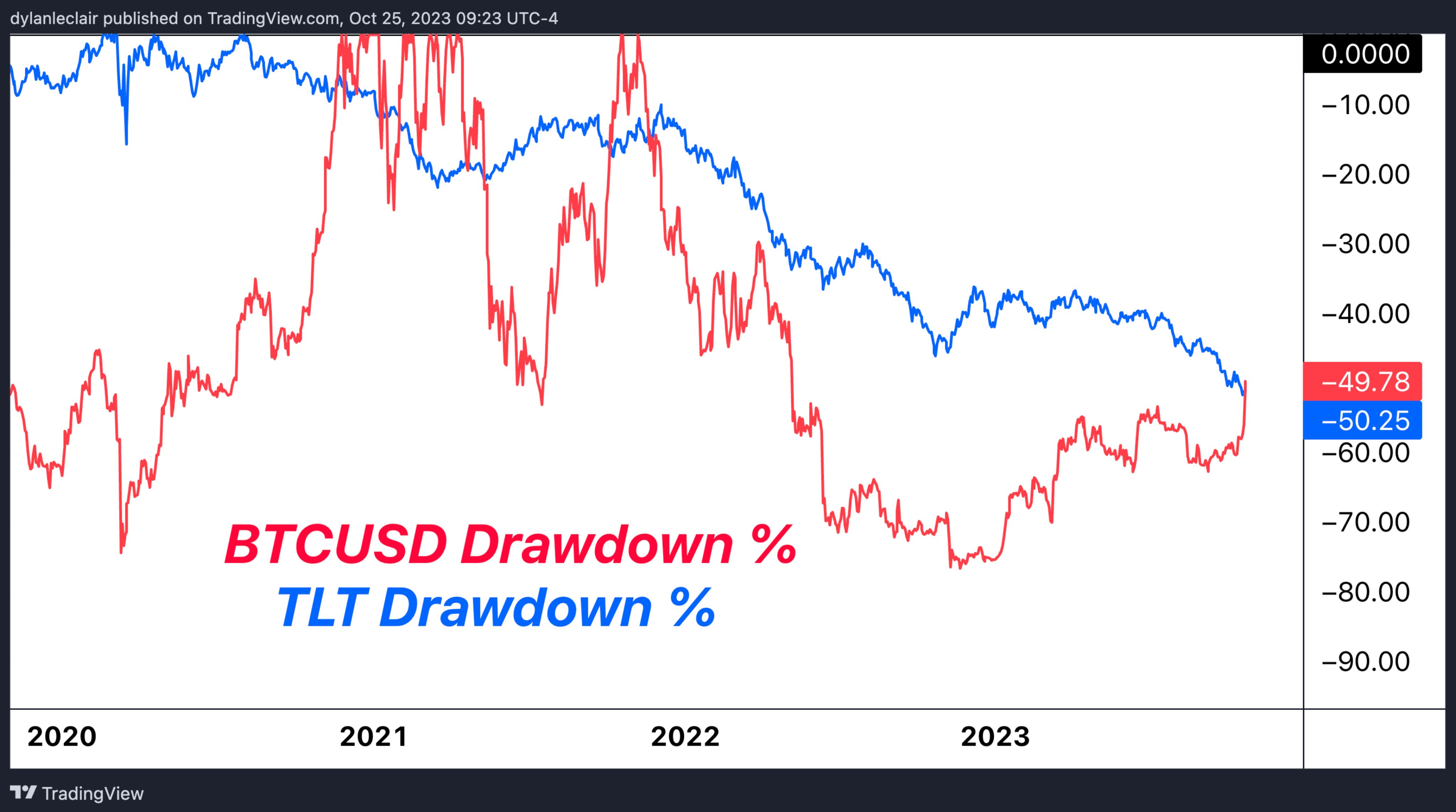 If you top-ticked US treasury bonds this cycle, the global “risk-free,” “safe-haven,” “flight to safety” asset, you are now down more than if you top-ticked bitcoin at $69k.