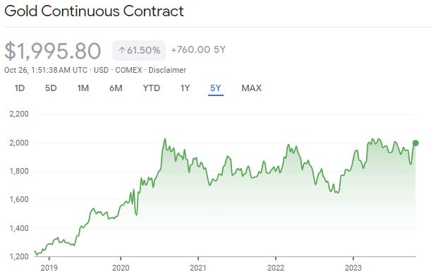 As such I think it’s important to look to boomer bitcoin for confirmation. Gold should trade as a debasement hedge and a safety trade during geopolitical conflict, like I anticipate bitcoin will prove to over time (I think it already has, but there are still doubters). The shiny yellow metal is amidst a three-week rally and bumping against the $2,000/oz level which has been a ceiling for the asset in the post-covid era.