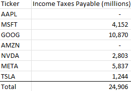 I haven’t seen any estimates on how much in aggregate taxes California individuals and businesses are expected to pay (read: how much money they’re expected to drain from the system) on October 16, but a quick scan of MAG7 balance sheets reveals $25 billion coming from those seven entities alone.