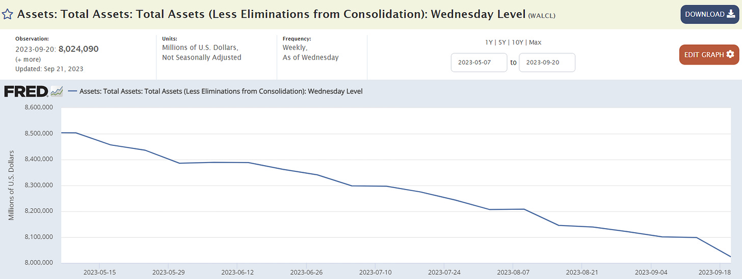 And at the same time the Fed has shrunk its balance sheet by another $500 billion: