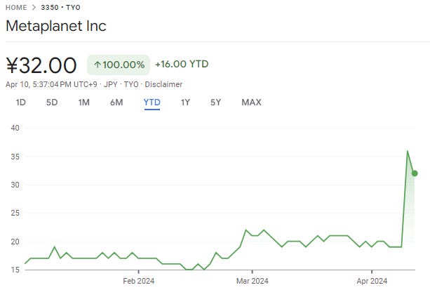 Japanese microcap stock Metaplanet — a former budget hotel operator turned web3 software developer — rallied 89%, tacking on $13 million of market cap, on Tuesday after announcing they had acquired $6.5 million in bitcoin as part of a new bitcoin strategy.