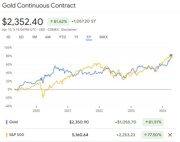 Gold Now Outperforming S&P 500 Over 5-Year Period