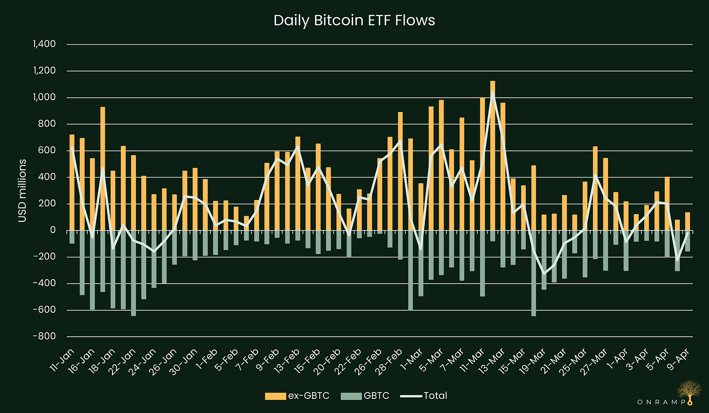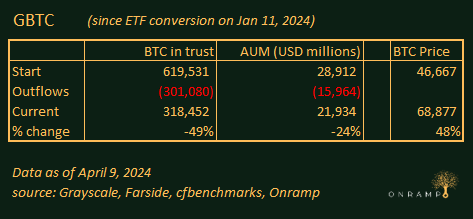 We are now 90 days post launch of spot bitcoin ETFs, and GBTC has seen a net outflow on every single day: