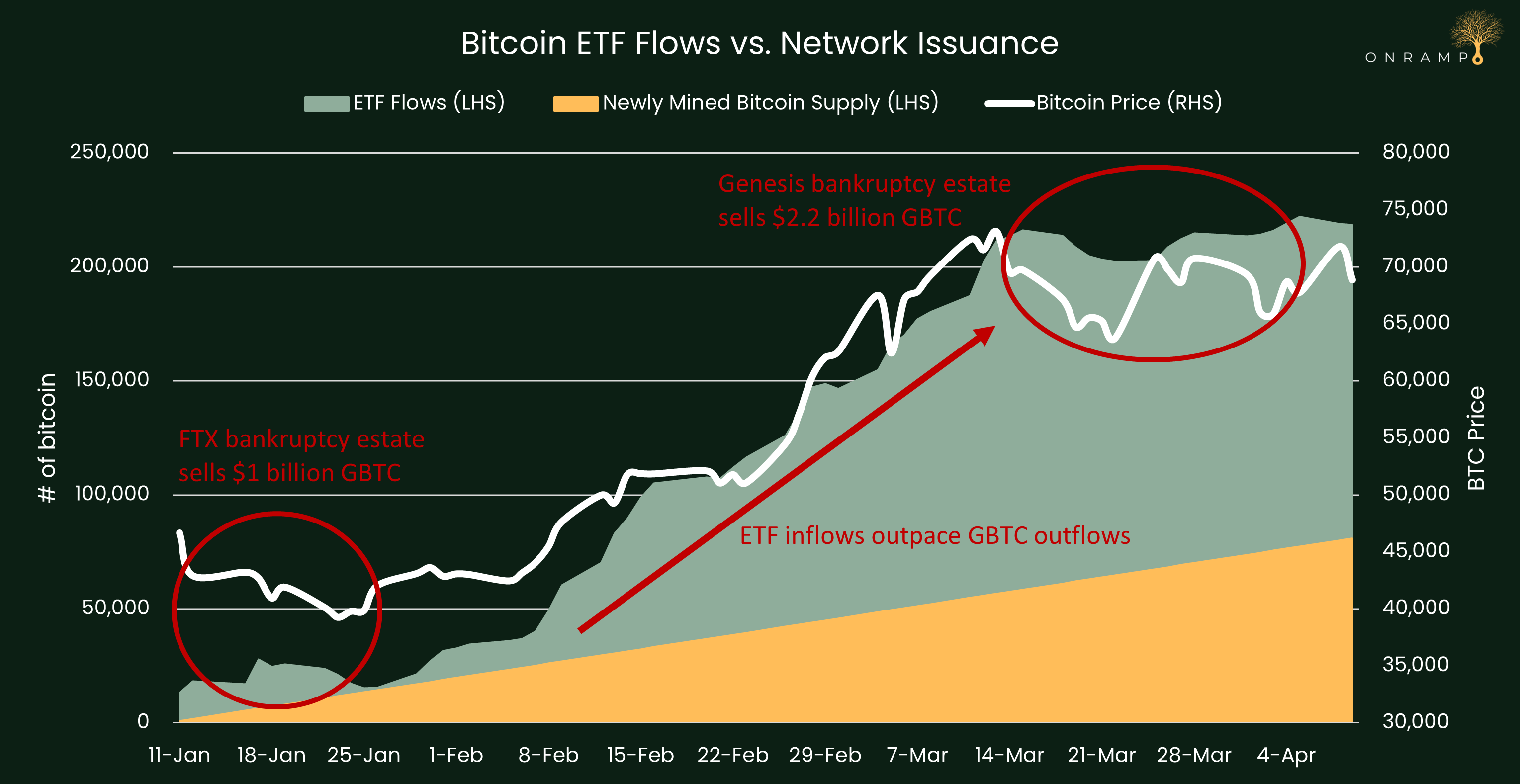 But, we do know that there have been two large, structural sellers of GBTC that were not turning around and buying the other ETFs — the FTX and Genesis bankruptcy estates.